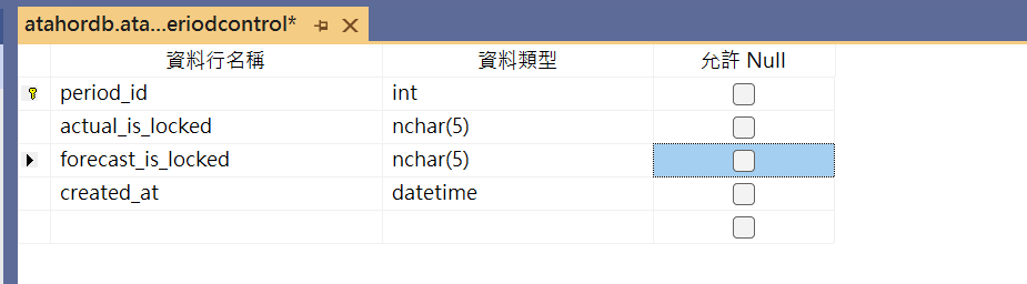 3. 'dbo.FIN_Periodcontrol'要新增欄位更改為forecast_is_locked