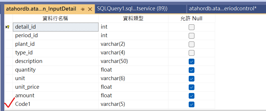 1. 'atahordb.dbo.Fin_InputDetail'需將Code1欄位定義的最大長度增加