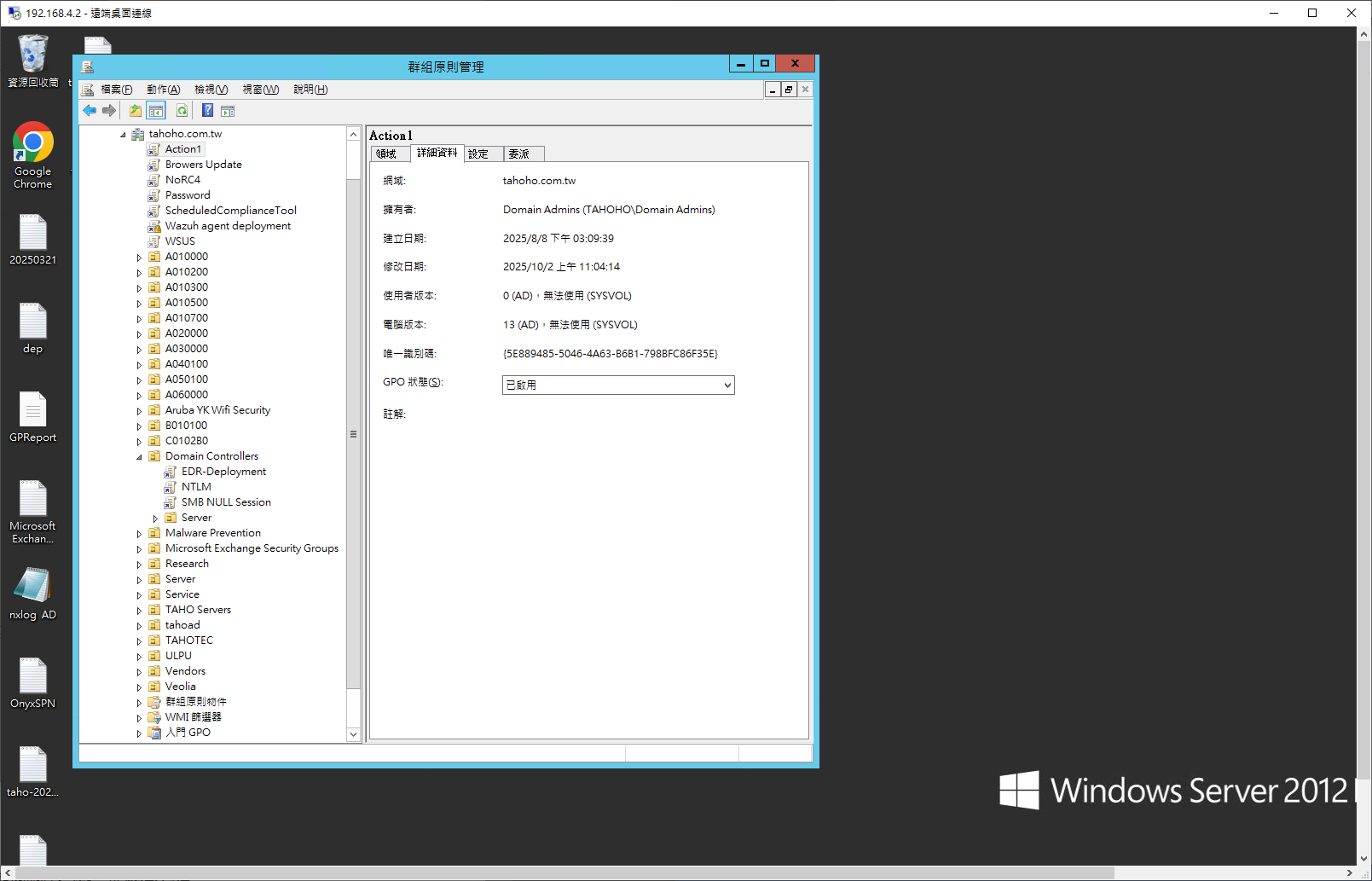 設定詳細的稽核,監控對這些敏感 GPO 的任何修改。在 Windows 安全事件日誌中,監控 Event ID 4662(對物件執行的作業)或使用 GPO 特定稽核事件來追蹤變更。