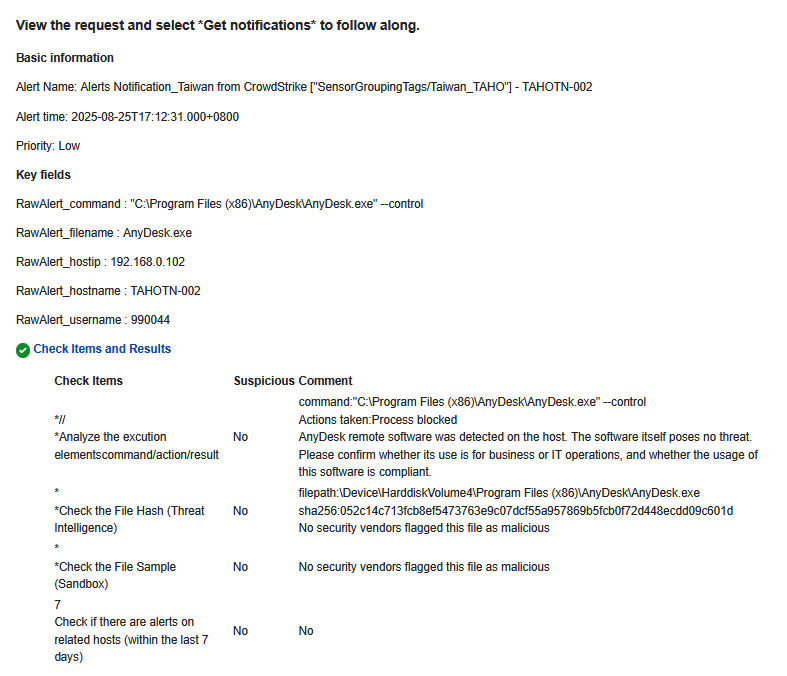 使用者990044 操作電腦 TAHOTN-002 使用AnyDesk 軟體 被偵測到