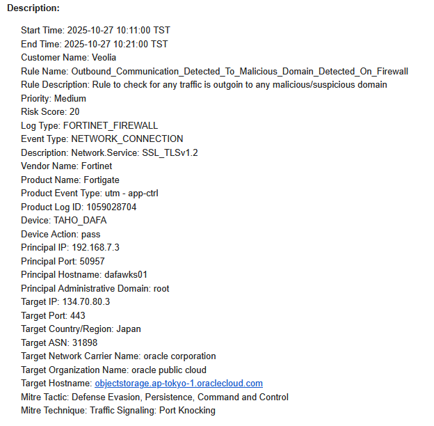 INCGC-13693-Outbound Communication Detected To Malicious Domain Detected On Firewall