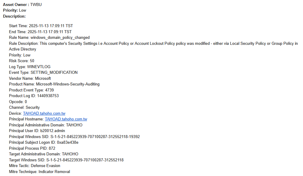 使用者 b20012.admin 修改 GPO 政策 ( AD 缺失改善調整 )