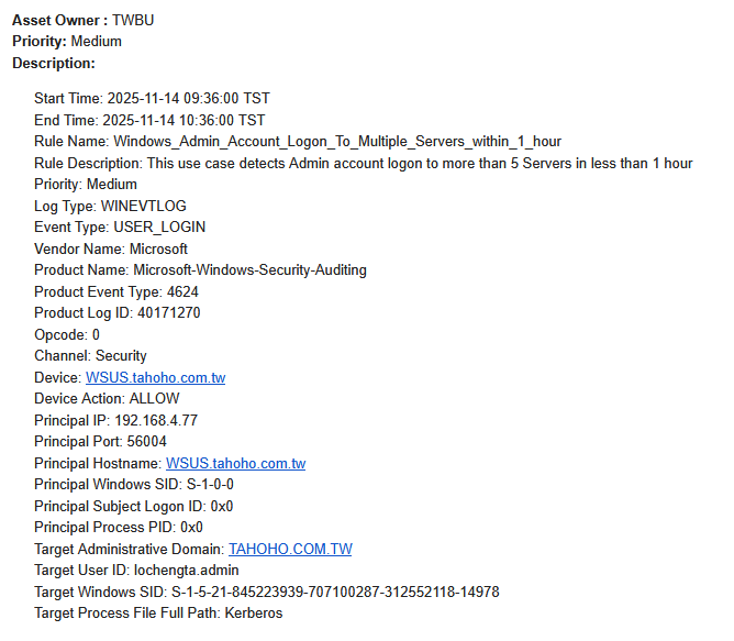 INCGC-14214-Medium-Windows Admin Account Logon To Multiple Servers Within 1 Hour