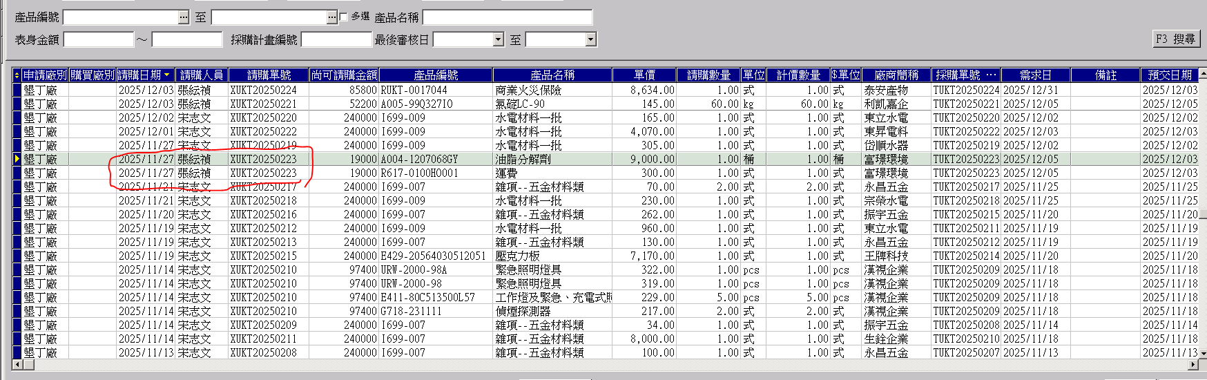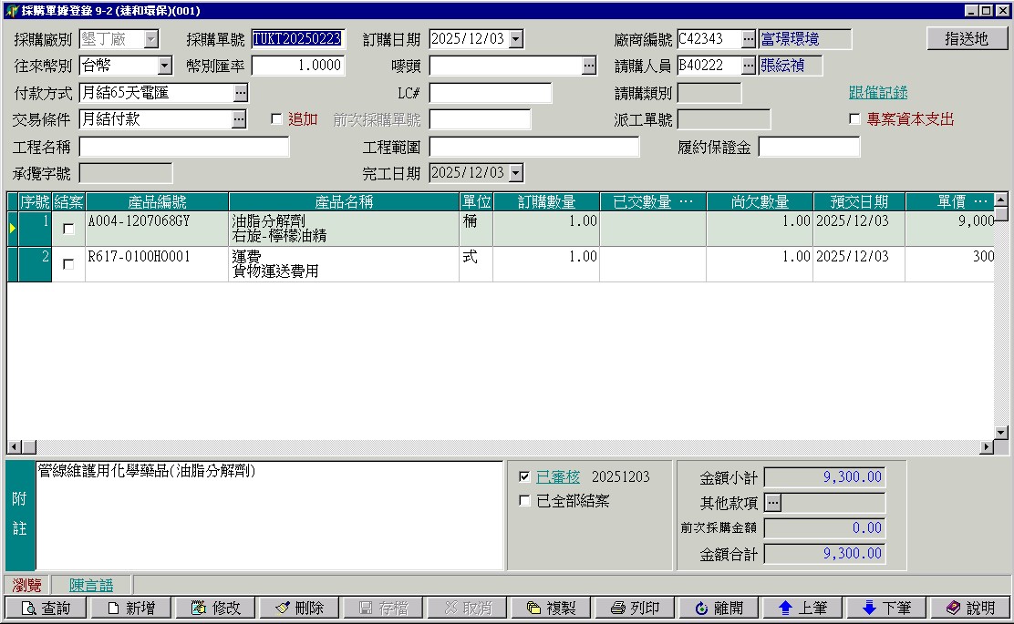 上水墾丁廠,採購單沒有轉到進貨單