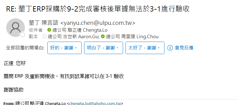 重新連線ERP後找到該單單據。