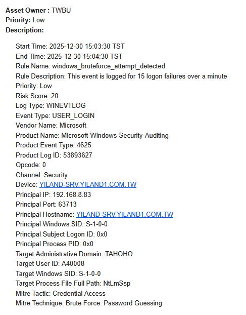 [INCGC-15488]-Low-Windows Bruteforce Attempt Detected