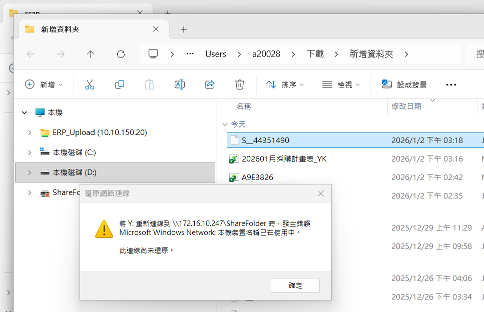導致全廠硬碟存取癱同仁陸續反應網路資料夾常常斷線