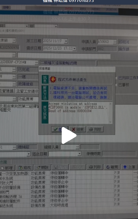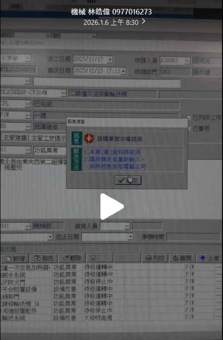 ERP 工單系統L4工單維護存檔錯誤
