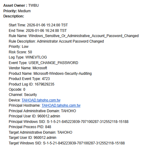 此為 台中管理人員 變更 管理帳號密碼 導致觸發告警.
