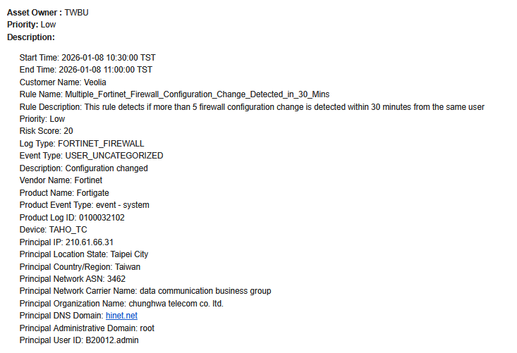 因 網管帳號 B20012.ADMIN 新增 網路維護廠商 帳號至各地防火牆 觸發此預警.