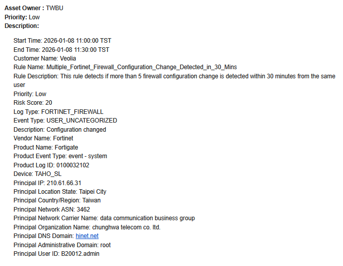 [INCGC-15643]-Low-Multiple Fortinet Firewall Configuration Change Detected In 30 Mins