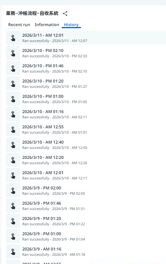 3/11檢查歷史執行紀錄,只能查詢到3/9之後