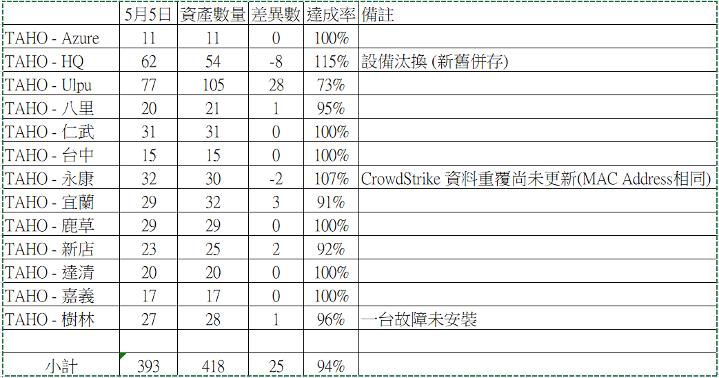目前已經有 65台設備進入管理介面受管控,後續再查找其他設備未入控管原因
