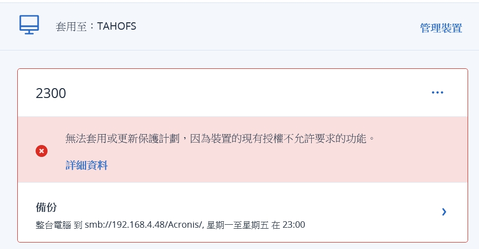 查備份未成功排程,出現 現有授權不允許... 等字樣.