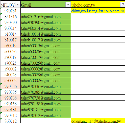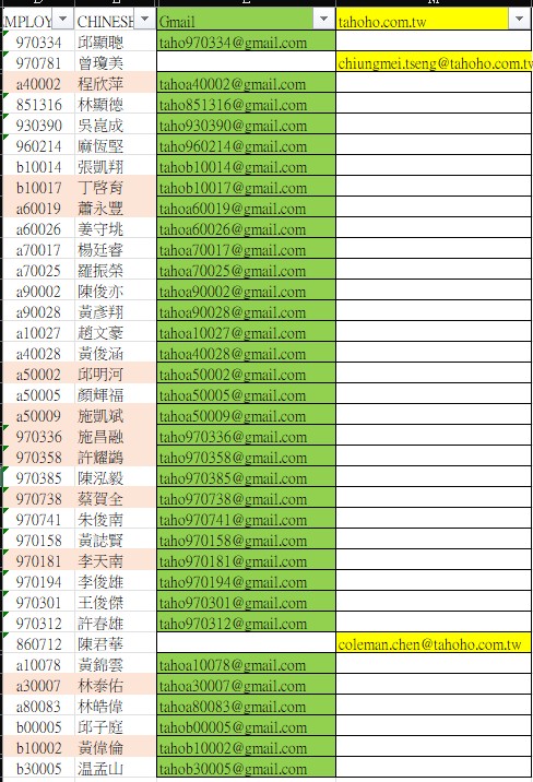 1. IT會議決定,原則帳號規則:工號@gmail.com,如果帳號已被註冊登記使用,則使用 公司+工號@gmail.com