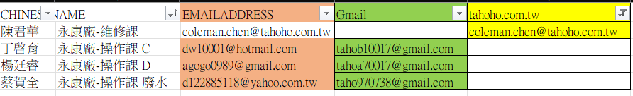 永康廠所有50位人員已全部完成公司Gmail信箱申請。