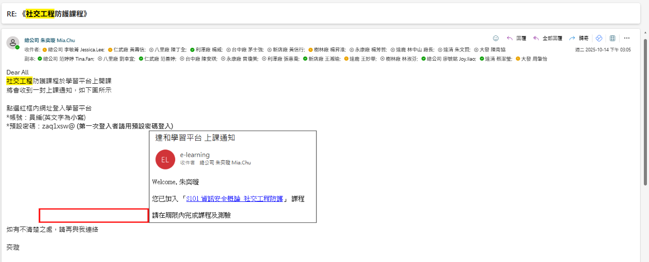 已請HR安排 上架 教育訓練平台.提供同仁使用