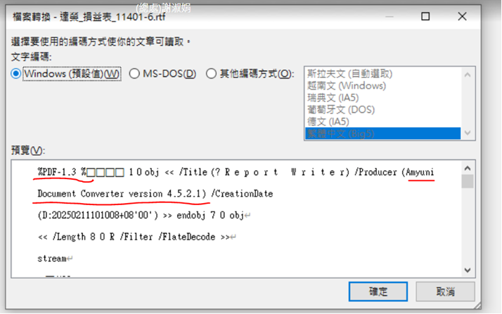 轉出來的檔案,使用WORD無法開啟,可是編碼選項是繁體中文BIG5,改選其他編碼都一樣