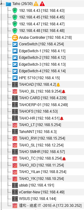 - 部分設備ICMP Fail產生告警,已經處理完成。